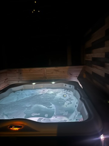 The most private andluxurious cottage being across from the others with a large window looking out to the lake. Enjoy sitting next to your fire in a hot tub while gazing at the lake and stars above. Two luxury queen mattresses in separate bedrooms wait for you at the end of a long day of adventure. Also includes a smart T.V with free Wi-Fi, hard ceramic flooring dining area, a complete kitchen with utensils, cooking/dinner/silverware included. A bathroom featuring large vanity, a rain-like shower head and hand-held with endless hot water. Can sleep a maximum of 5 people comfortably with linens and towels provided. A rollaway bed can be added upon request. Comes with a personal motorized row boat and dock. Only minutes from the Up North lodge with delicious food, full bar and special events.